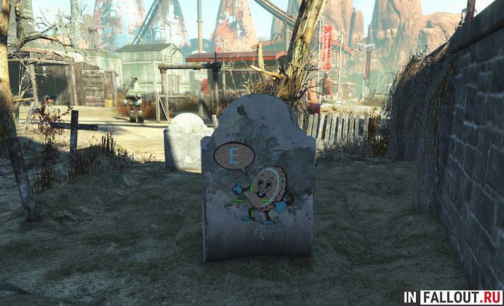 На небольшом столике возле скелетов солдат возьмите Рецепт «Ядер-Экстрима», которым вы потом сможете воспользоваться в Автомате Ядер-Смешивания, а также он необходим, чтобы получить достижение дополнения Nuka-World «Дизайнер напитков». Рядом есть боеприпасы и Ядер-Кола Победа.