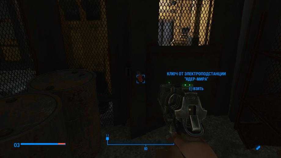 Чтобы выбраться нужно пройти по маркеру к запертой двери, повернуть в комнату слева, и забрать ключ от электроподстанции. После возвращайтесь к двери, через которую вошли, и поверните в комнату справа.