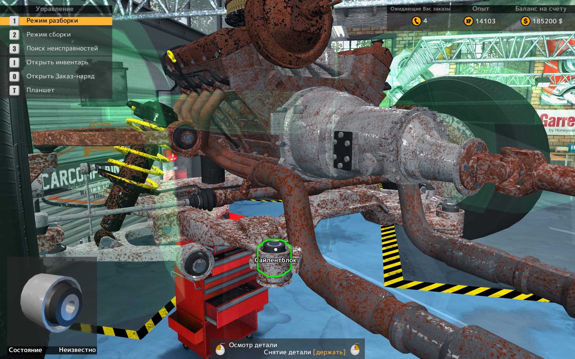 Дабы облегчить прохождение Car Mechanic Simulator 2015 – стоит прокачать ускоренное откручивание болтов и гаек (активируется у шкафчика и доступно после первой набранной тысячи опыта). Переходим непосредственно к ремонту. Как правило, он проходит по одному алгоритму, состоящему из трех пунктов…