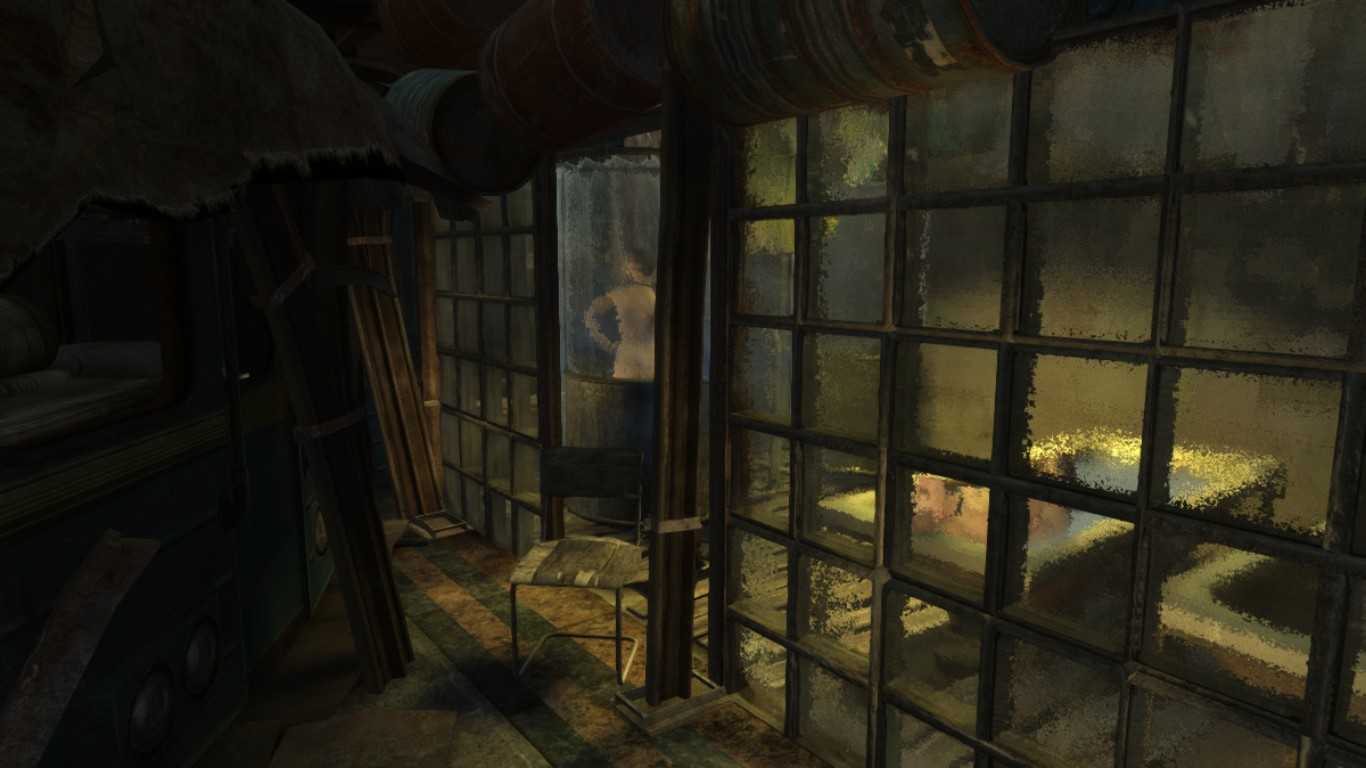Что дальше, Артем? Через дверь не выйти, поэтому придется опускаться все ниже и ниже в ад. Через мусоропровод мы попадаем в канализацию, и она полна трупов. Дальше мы видим колодец, и он тоже полон трупов. Выше него — клетки с людьми, которым не повезло родиться с аномалиями…инфернальное совершенно зрелище, поистине, фашисты одинаково чудовищны в своих действиях, что до апокалипсиса, что после. Идите за Павлом в тени до решетки, подсадите его на лестницу, забирайтесь. Дальше небольшая стелс-прогулка, следуйте указаниям опытного красного партизана. Наверху доберитесь до офицера, стоящего справа, и убейте (или оглушите, если получится). Опустите лестницу, использовав рычаг. Занятно, что инструктируют по дальнейшим действиям Артема узники в клетках.