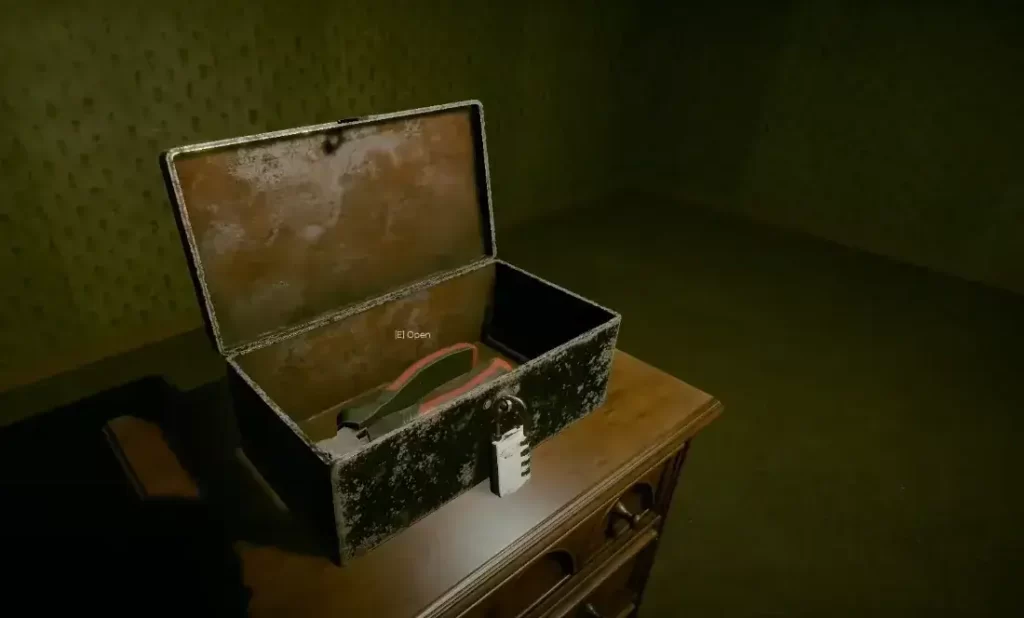 - Откройте ящик, который стоит на тумбе четырехзначным кодом из шага выше (он всегда разный).