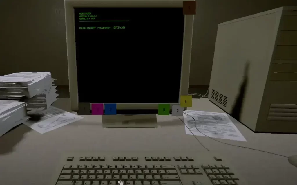 - Мчите к главному компьютеру введите в него пароль, который узнали ранее из своих находок (постоянно изменяется).