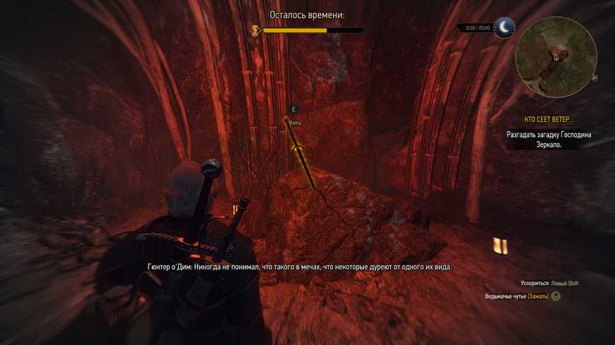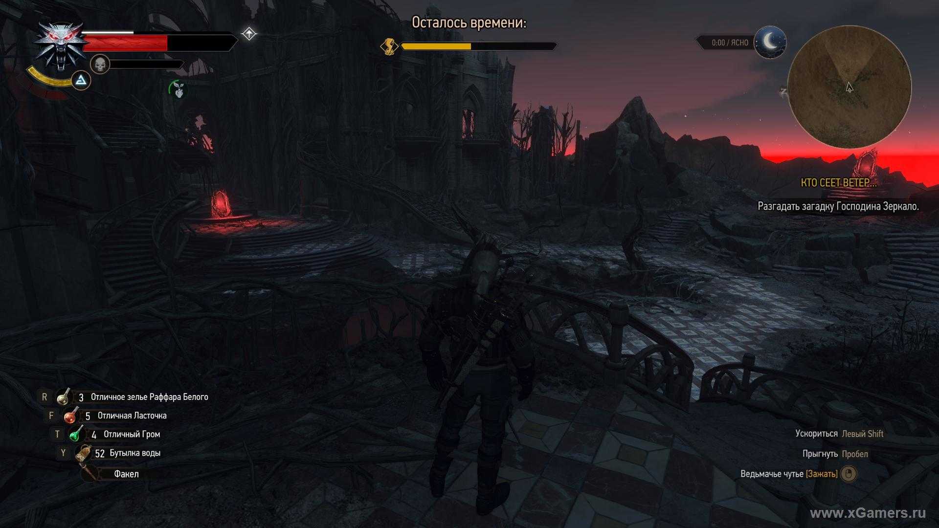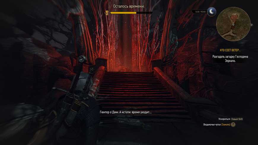 Но Господин Зеркало не был бы собой, если бы не строил козни на пути. Как только Геральт окажется в его мире, то начнет тикать время прохождения задания, поэтому стоит поторопиться.
