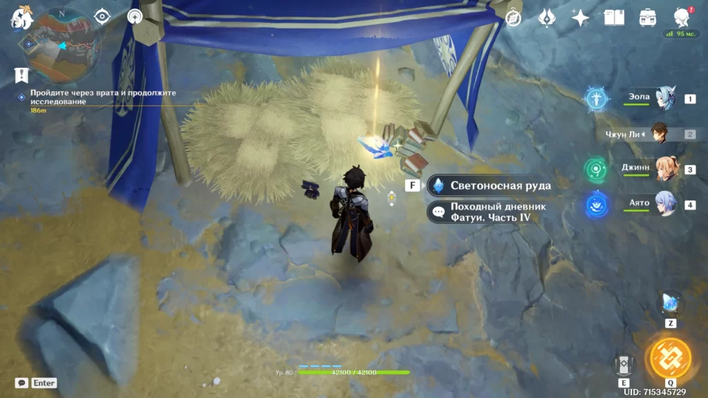 Забрав куб, идем к Чжи Цюн. Вместе с ней идем в лагерь экспедиции (который теперь находится в другом месте), просто двигайтесь вперед по дорожке. Открываем еще один телепорт.