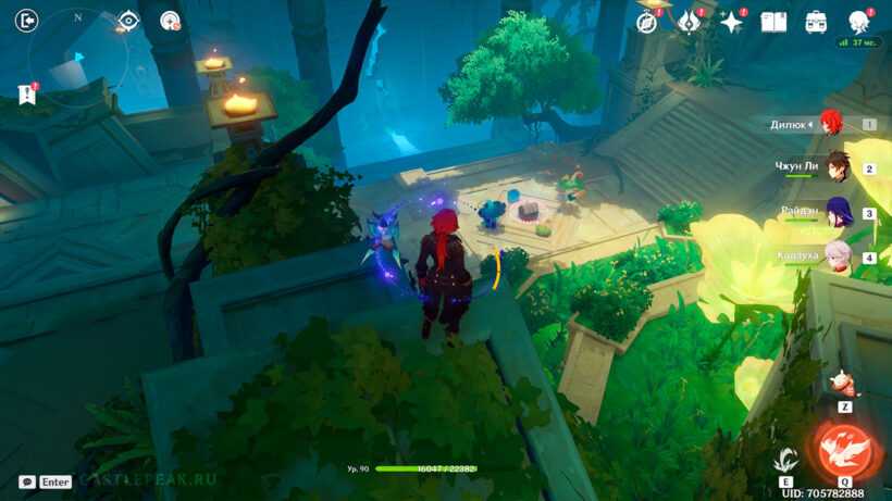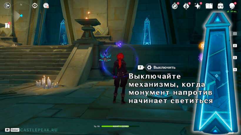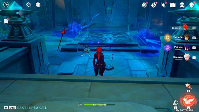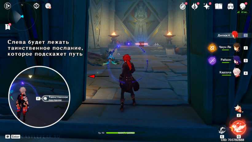 Подойдя к огромной двери, вас ждёт вход в данж. Мистические руины — подземелье для которого в отряд рекомендуются пиро, электро и крио персонажи.