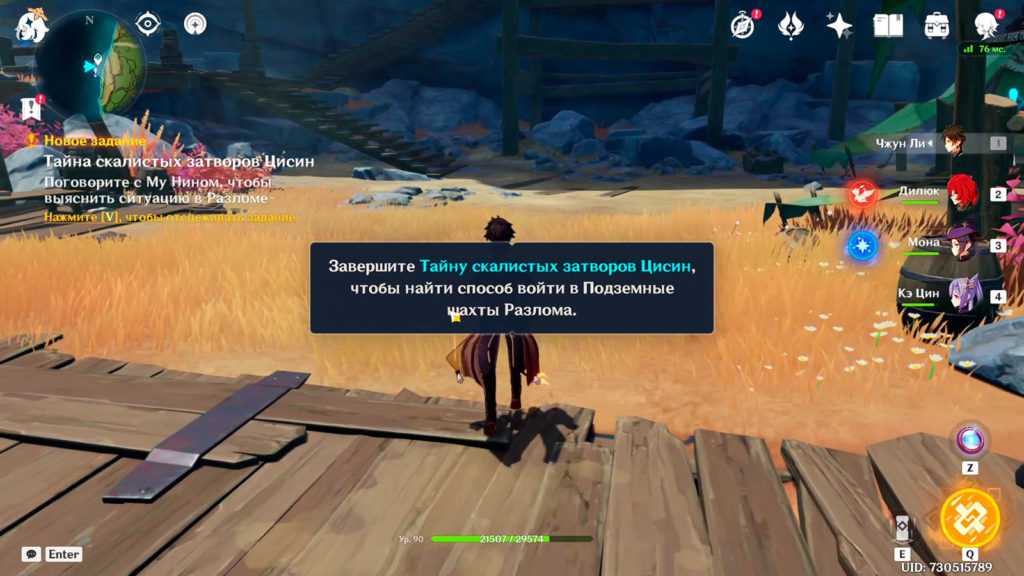 Чтобы зайти в шахты, вам потребуется выполнить задание мира «Тайна скалисты затворов Цисин», оно выдаётся автоматически после разговора с шахтёром.