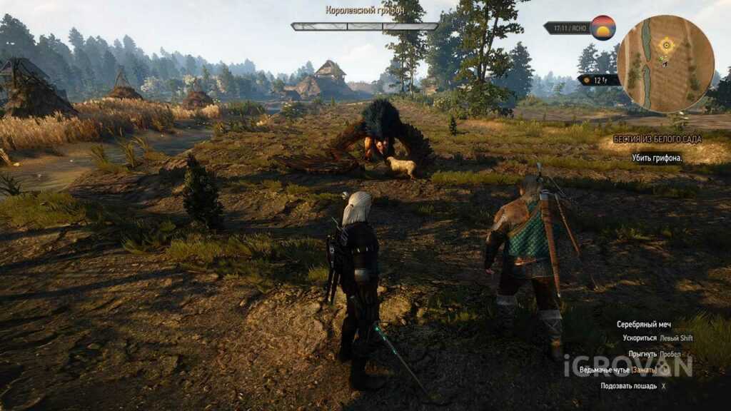 Грифон не заставит себя долго ждать и быстро клюнет на приманку. Весемир так же передаст Геральту арбалет, с которым убить грифона станет чуть проще. Вам остаётся победить грифона, чтобы забрать с его тела голову в качестве трофея. Так же с чудовища выпадет немало полезных вещей и ингредиентов.