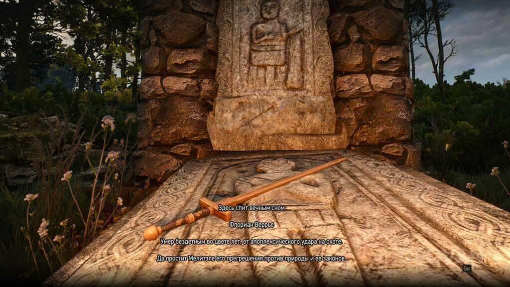 Интересно, что на кладбище Белого сада есть могила Флориана, где написано, что он погиб на охоте. Если проходили квест «Лихо у колодца», то читали в дневнике, что помещик сильно разозлился на Клару и Волькера. Травница Томира дополнит историю, рассказав, что Клара сказала что-то неприятное о сыне помещика. Вероятно, это была правда о Мыславе и Флориане.