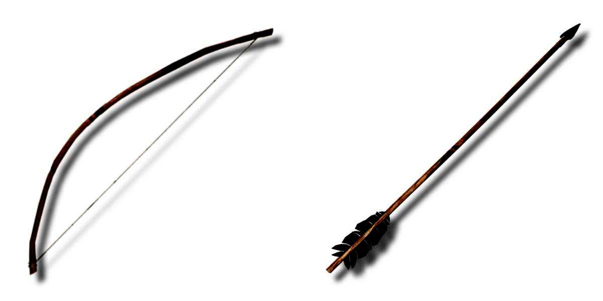 - Простая стрела: Это патроны многоразового использования. Их можно найти в некоторых местах игры или изготовить в Верстаке, используя один наконечник стрелы, одно древко стрелы и три вороньих пера. Процесс занимает 90 внутриигровых минут. Хотя стрелы можно использовать повторно, их качество будет снижаться на 25% с каждым попаданием.