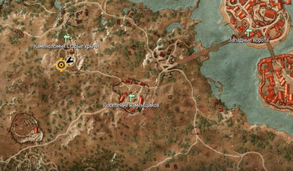 Отправляемся в карьер Старые Хриски, расположенный к западу от города Оксенфурт. Спускаемся на дно карьера и находим шахту — она находится на противоположном конце карьера, если смотреть со стороны знака перехода. Внутри находится сундук с улучшенным дизайном перчаток Школы кошек.