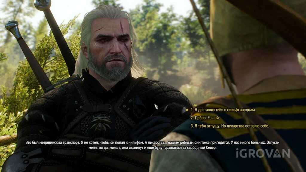 Второй вариант, когда вы догоните темерского партизана и собьёте его с лошади — отпустить незадачливого купца вместе с добытыми лекарствами. В этом случае ефрейтор от всей души поблагодарит Геральта за правильный выбор, расплатится с ним и отчалит.