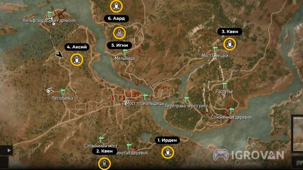 В стартовой локации расположены шесть мест силы. Изначально они скрываются по знаками вопроса.