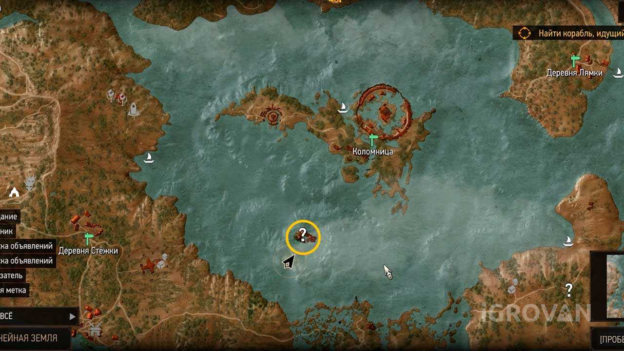 Дальше нас ждет самое большое скопление крутых сундуков в одном месте в Велене. Я имею ввиду руины к югу от Коломницы. Изначально здесь стоит знак вопроса, который указывает спрятанное сокровище. Но вот все ли сундуки вы обнаружили в этих руинах? Давайте посчитаем: