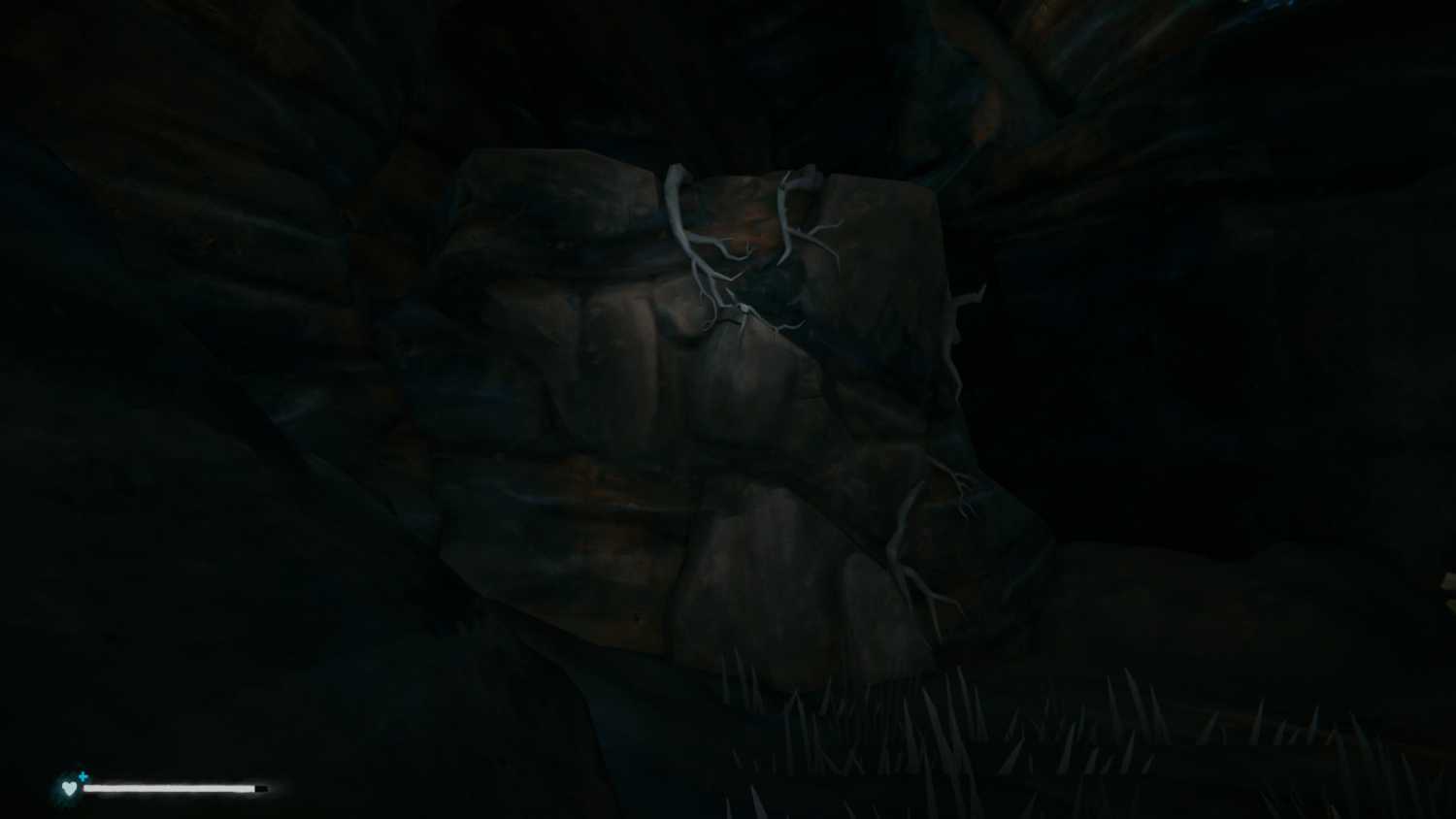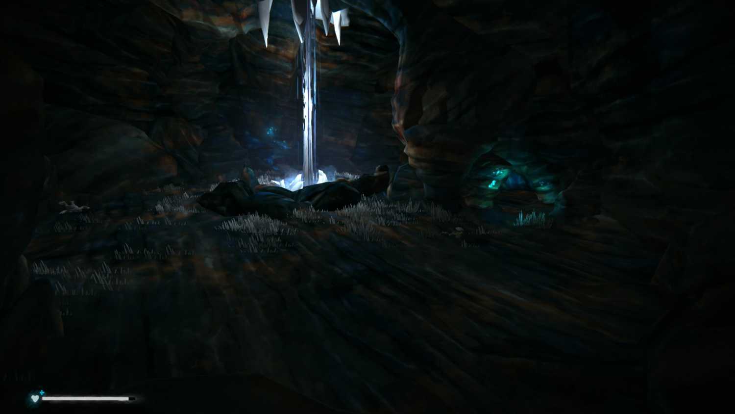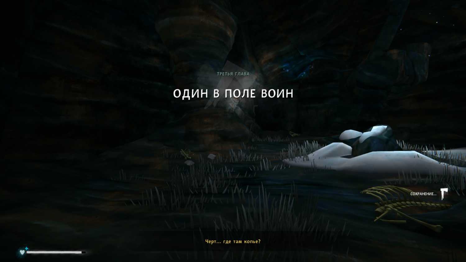 Он остановится у соседней норки, куда нам и нужно. Пробегаем пещерный лабиринт, забрав у трупа медикаменты и идем дальше. В большом помещении необходимо добраться до другой стороны. Снова попадете в маленький туннель, а через него в последнюю комнату, где будет лежать копье.