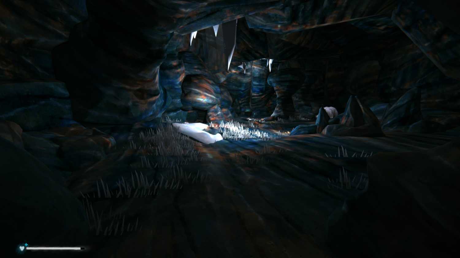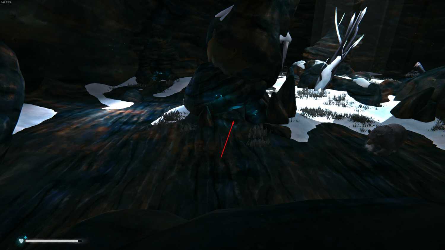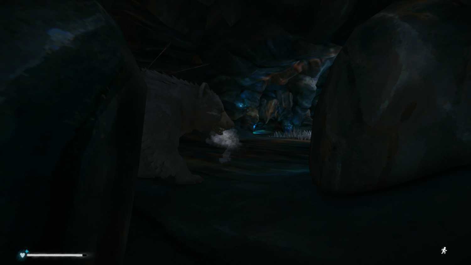 Очнемся в его берлоге, присядьте и осторожно пройдите за спиной хищника до уступа, по которому можно забраться на верх, а затем просто продвигайтесь по пещере. Минуя несколько поворотов наткнетесь на дыру, приготовьтесь бежать, прыгнув вниз за вами погонится медведь, убегая от него быстро заползите в маленький лаз