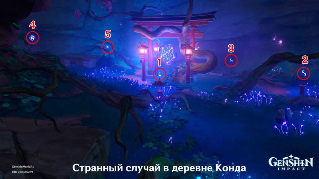 Правильно выставив порядок, подойдите к первому фонарю и нажмите «Молиться». Далее вам предстоит сразиться с боссом по имени Отимуся. Разберитесь с ним и поговорите с Кадзари. На этом задание завершится. Вы получите 350 очков приключений, 20 000 мора и 40 камней истока. Плюс, вам откроется следующий побочный квест – «Жертвоприношение».
