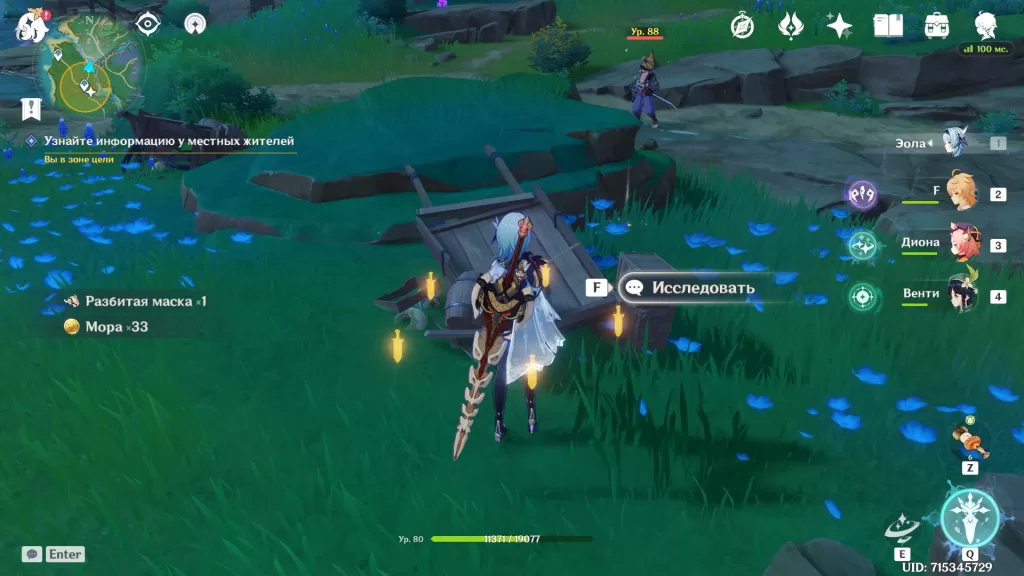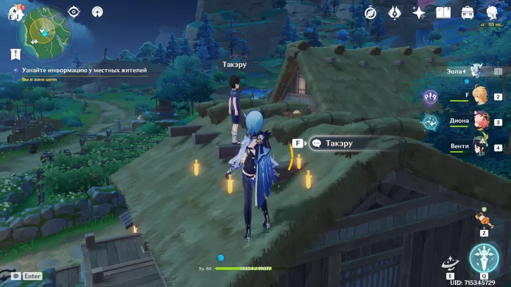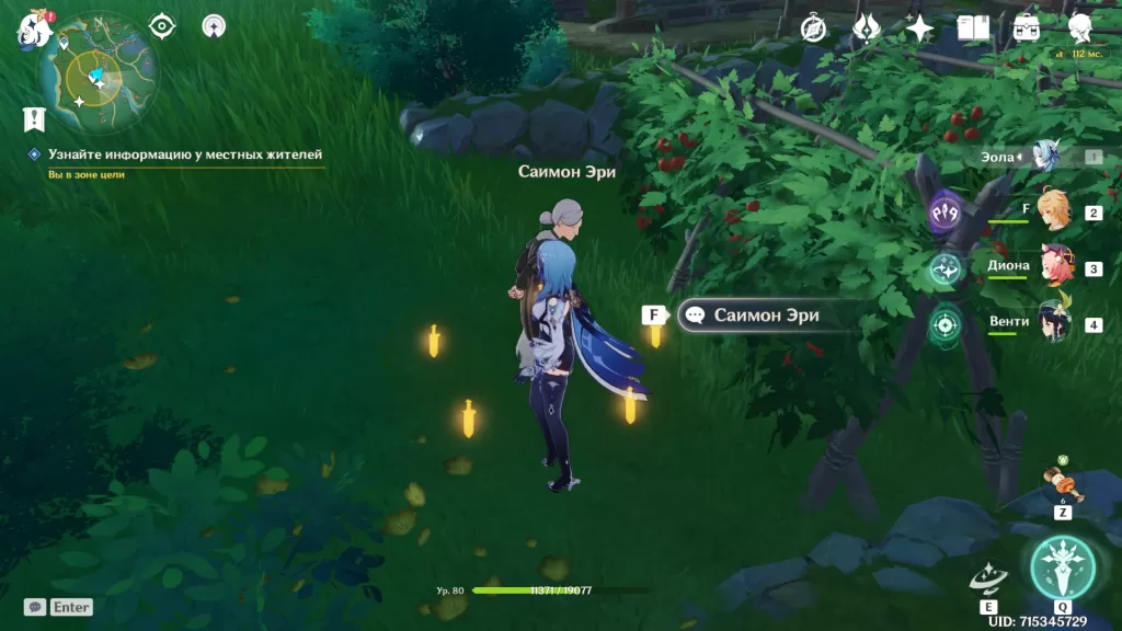 Следуйте в отмеченную на карте область, пока не появится Паймон. Она скажет, что чувствует что-то мрачное, и вы вместе решите расспросить местных.