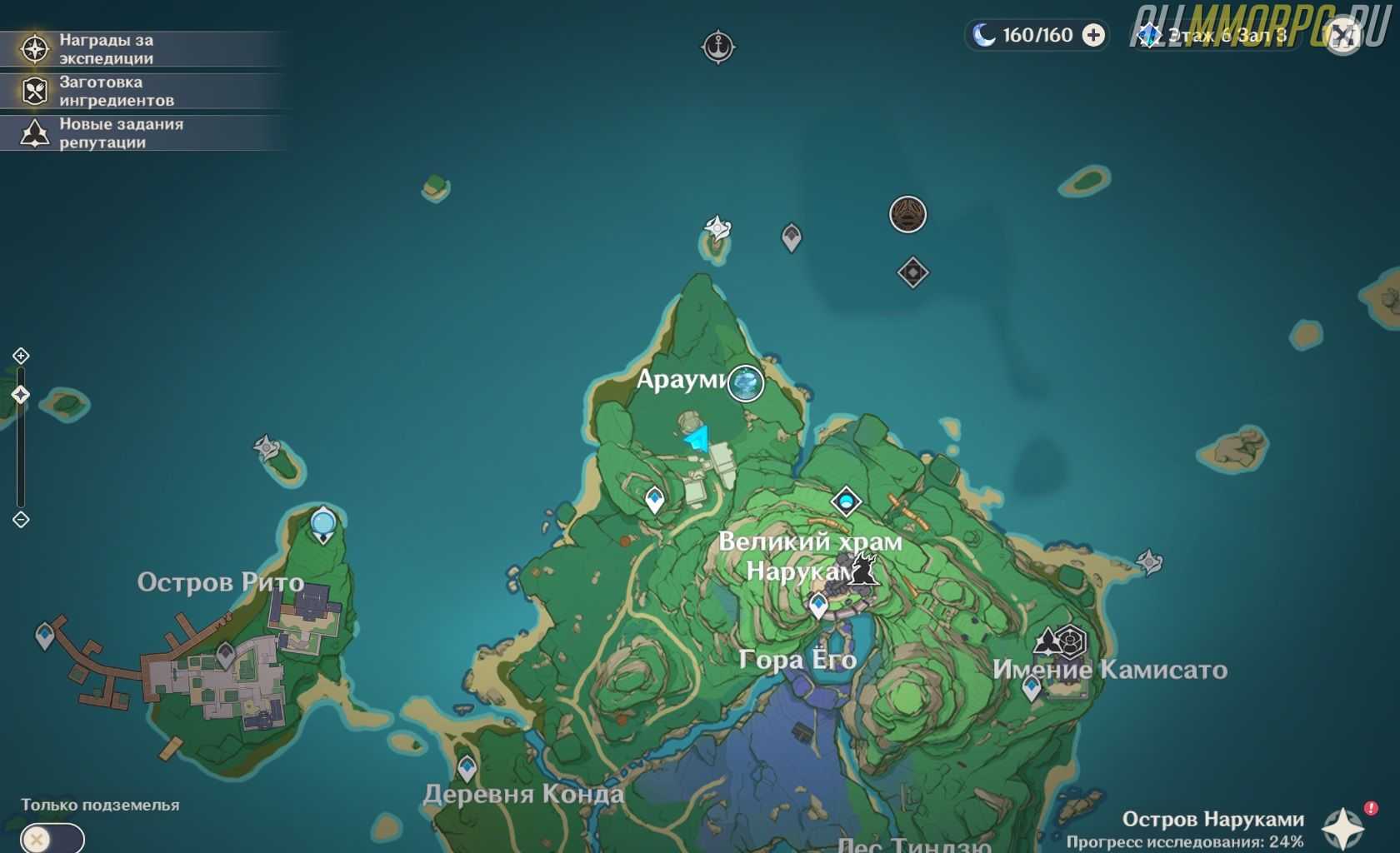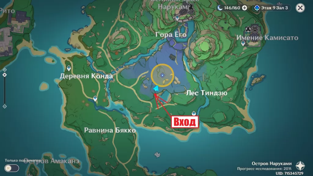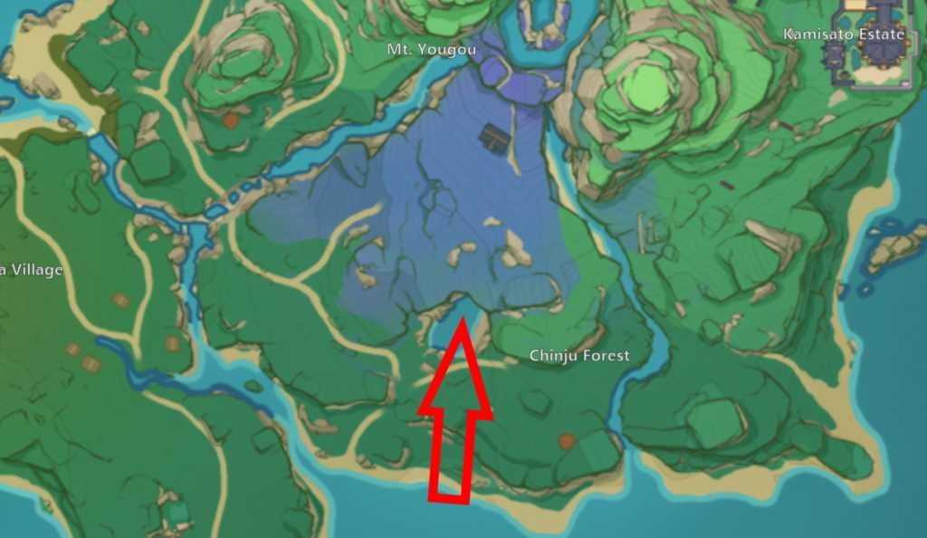 На карте он не отмечен, и, чтобы его найти, нужно идти к югу, где озеро. Спуститесь вниз и найдите пещеру под заброшенным святилищем. Как только вы войдете, появится область для исследования.