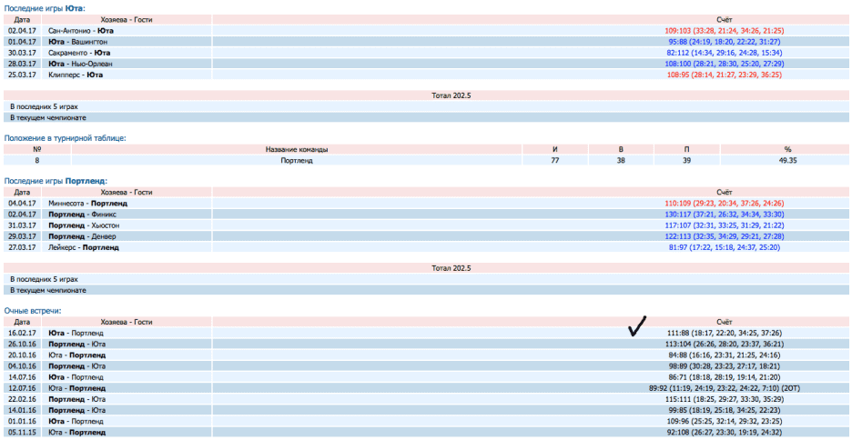 Нас интересует такая ситуация. Одна команда прошлую игру выиграла все четверти. Либо другая команда прошлую игру проиграла все четверти. Либо их очная встреча закончилась победой одной из команд во всех четвертях.
