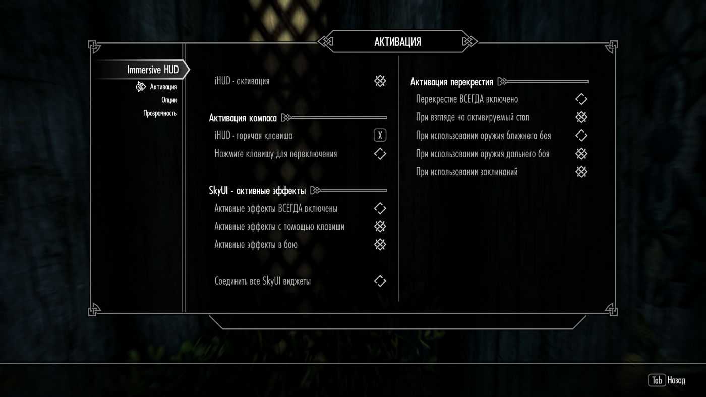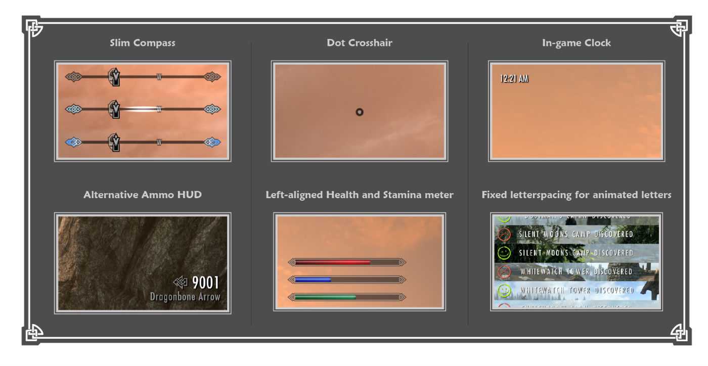 iHUD добавляет в игру Skyrim SE возможность изменять внутри игровой интерфейс, компаса, индикаторов, прицела с настройками. В результате iHUD делает элементы интерфейса видимыми когда они нужны и скрывает их когда вы не нуждаетесь в этом.
