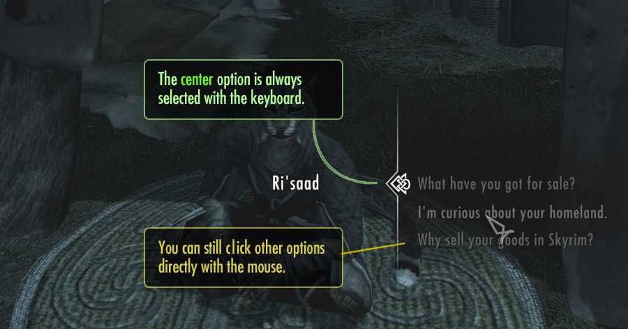У вас не бывало такого, что выбирали диалог, но почему то выбрался совсем не тот?! Так вот этот мод решает такую проблему, теперь вы точно выберете нужный вариант!
