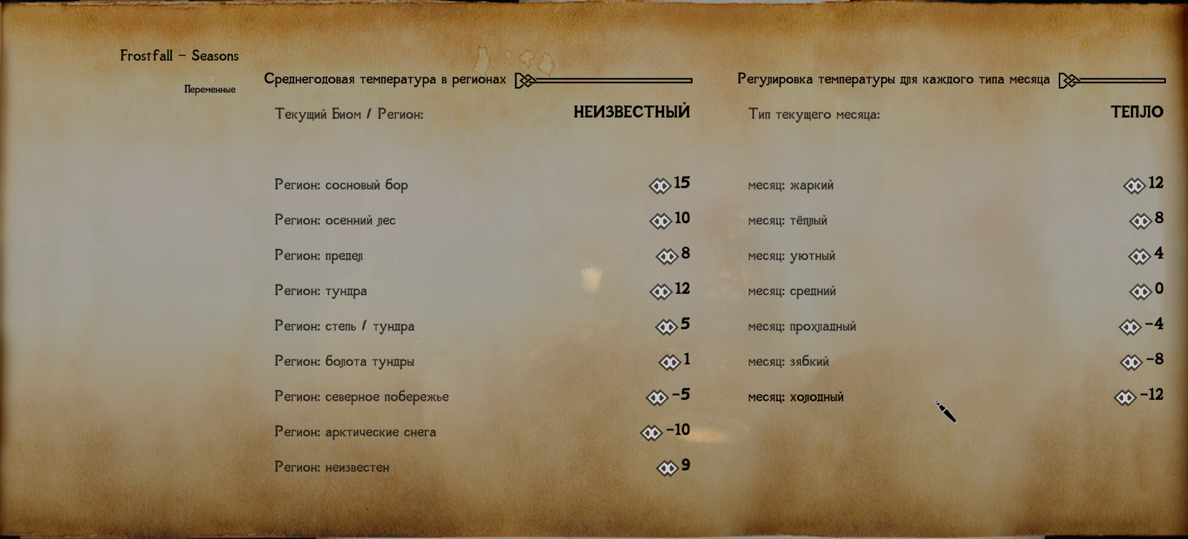 Так же будет интересно примесить «Wet and Cold» с модами, которые добавляют новые игровые зоны со своей погодной системой, где эффекты мода станут еще более заметны.