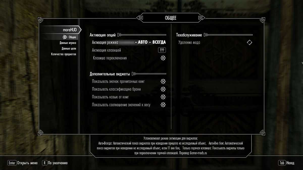 SkyHUD – данный мод для игры Skyrim SE, позволяет включать/отключать элементы HUD, размеры индикаторов, изменять их позиции и менять элементы на альтернативные версии.
