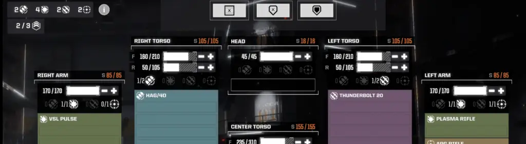 Щелкните правой кнопкой мыши мех, чтобы увидеть, сколько очков уклонения у него в данный момент. (это отметки >>> под черным ящиком в верхней части экрана), а также обзор снаряжения оружия противника. Будьте в поисках вражеских турелей для Sensor Lock вашего копья, которое подвергает их непрямому ракетному обстрелу каждый раунд, даже если они не находятся рядом с вражеским мехом.