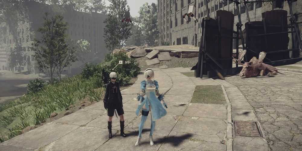 На самом деле это довольно интересная аналогия — думать о 2B как об Алисе, которая отправляется в другой мир, похожий на ее собственный, но имеющий новые странные странности. Вы можете провести параллель между Землей, какой она стала, по сравнению с тем, какой она была при жизни людей, или даже странным фантастическим миром, который создает Адам и в который входит 2B.