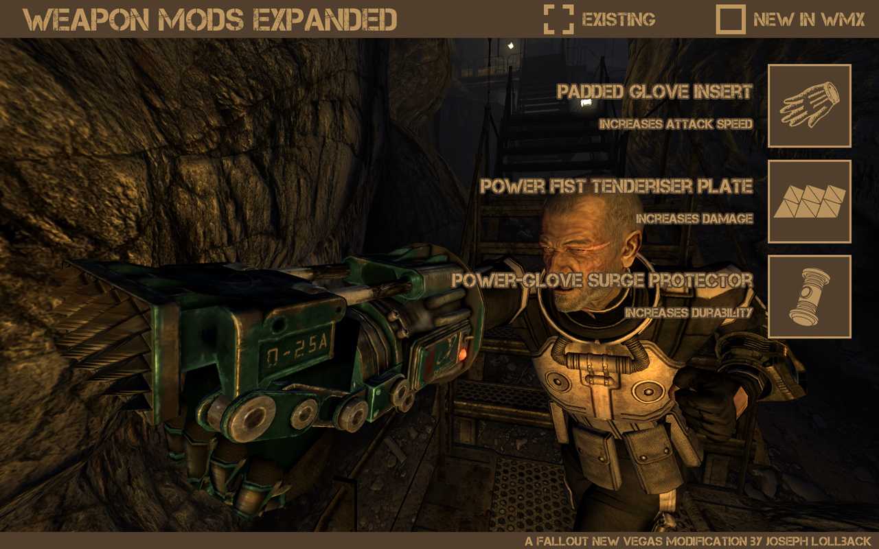 . Десятки новых модификаций для оружия на Пустошах Мохаве. Позволяет не только создать действительно уникальный и мощный ствол парочкой улучшений. Мод расширяет возможности развития оружия – теперь можно добавить куда больше модификаций. Важная особенность – почти каждый мод изменит внешний вид оружия. А после дополнения