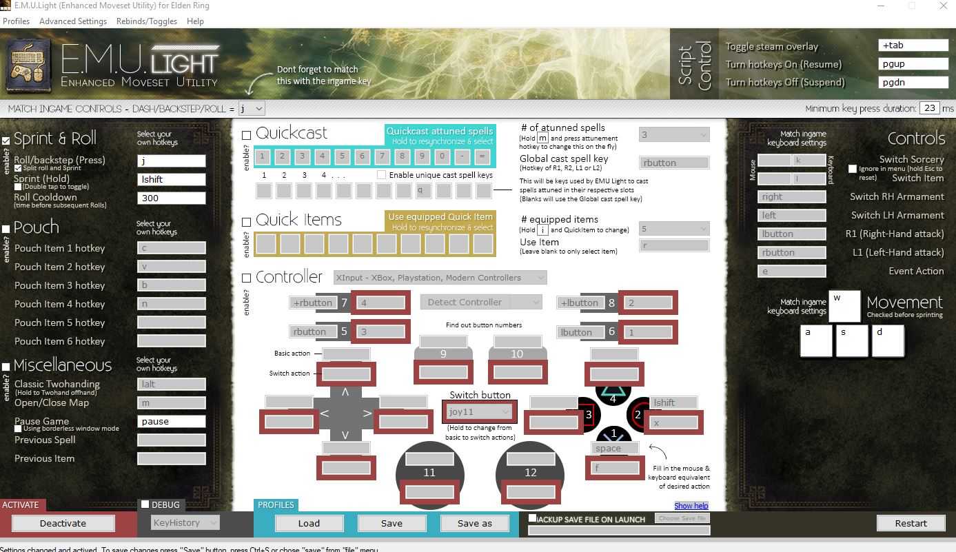 Кратко опишем все преимущества мода. Во-первых, уменьшена задержка ввода при бросках активных предметов вроде бомб. Также можно настроить горячие клавиши для применения любого предмета или магии, либо переназначить спринт и перекат на разные клавиши. Если даже этого недостаточно, то благодаря специальной кнопке Switch, при ее зажатии, функциональность всех клавиш меняется, что позволяет назначить на одну клавишу сразу несколько действий. Этот мод будет явно очень полезным для тех игроков, кто не против потратить время для настройки управления и перенастройки клавиш, получив более мобильного и эффективного в бою протагониста.