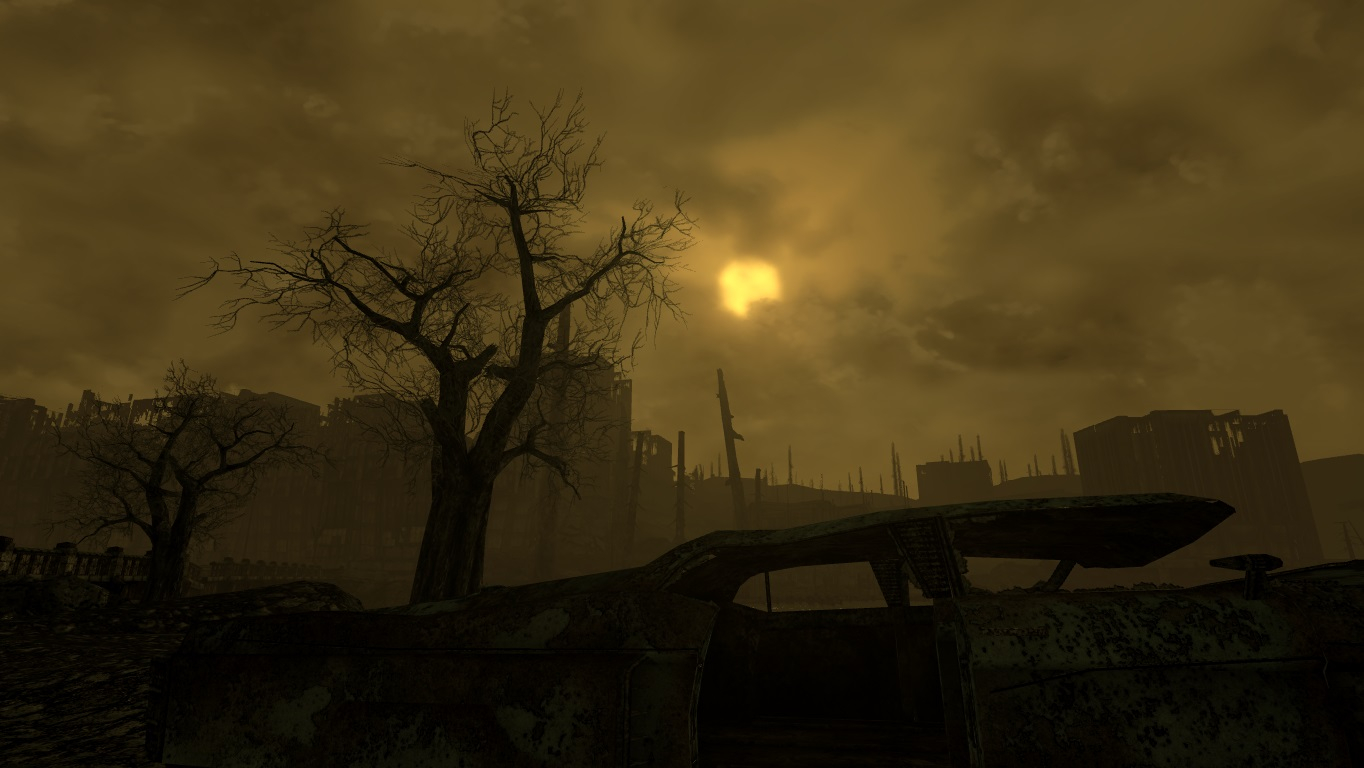 Когда вы бродите по пустошам, то должны перманентно ощущать близость конца света или даже наблюдать его воочию. Но почему небо такое чертовски красивое? Даже если со времени Великой войны прошли годы, нет никакого оправдания тому, чтобы небо выглядело таким идеально чистым после ядерной катастрофы планетарного масштаба. Конечно нужно быть ученым, чтобы с уверенностью заявлять такое, но даже с точки зрения погружения более тусклое небо сильно бы поменяло атмосферу Fallout 3 в правильную сторону.