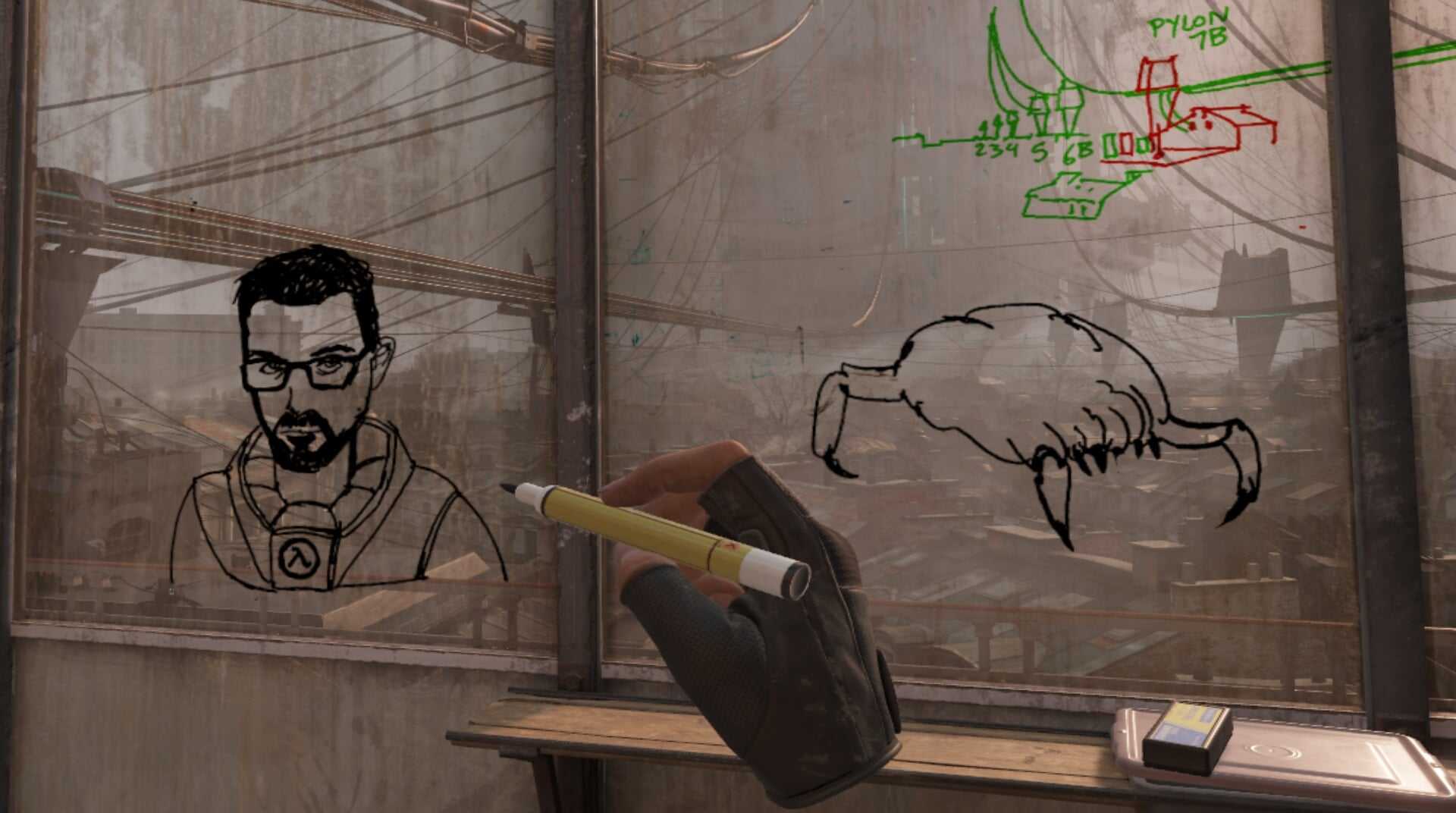 Пожалуй, ради этого и затевалась Alyx — дать игрокам на растерзание окно, несколько маркеров и терку, позволяя тем писать все, что вздумается. Разумеется, первым делом начинающие художники начали рисовать самые известные символы в истории человечества.