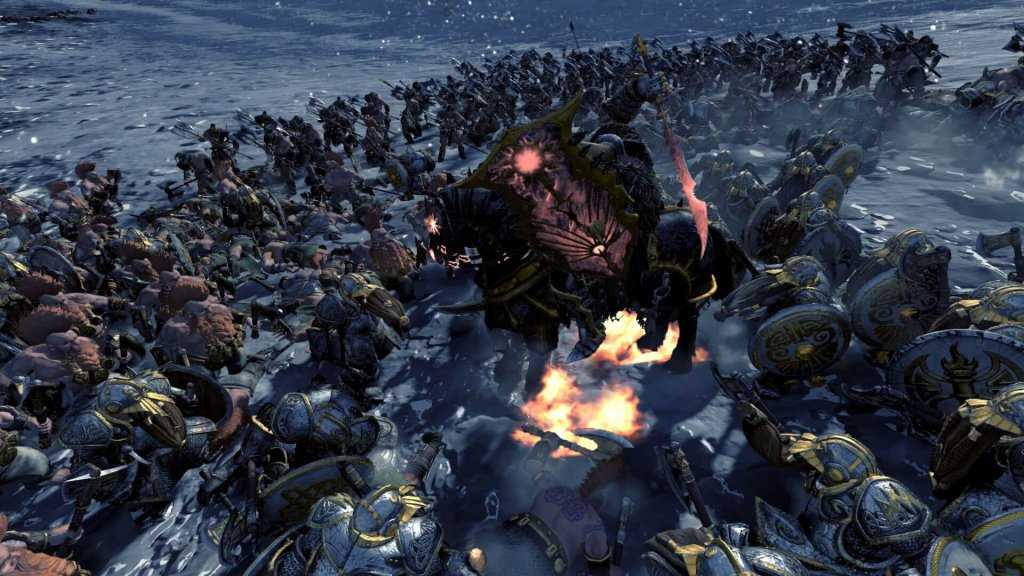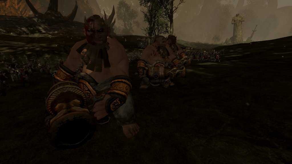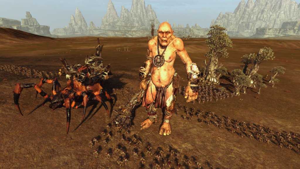 Играли когда-нибудь в «Skyrim» с модом «Giant Giants»? Вот оно и есть, великанские великаны, да ещё эффект распространяется и на гигантских пауков Зеленокожих и огромных летучих мышей Вампирских Графов. Великаны, топчущие крохотных врагов, копошащихся у них под ногами, выглядят действительно жутковато.