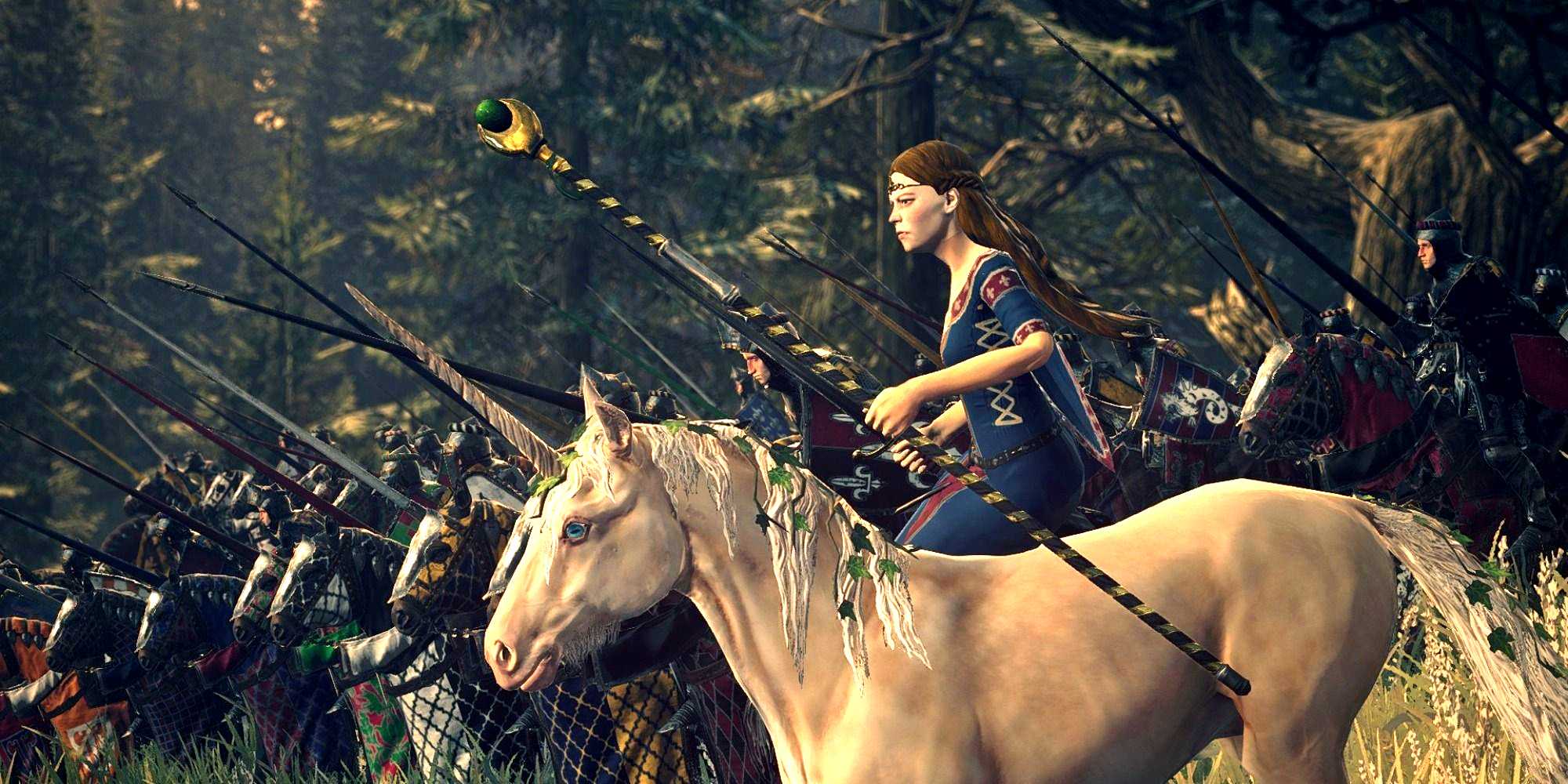 Юнит верхом на единороге в Total War Warhammer 2 Этот мод представляет собой компиляцию модов Reskin от hooveric, в которых прорабатываются детали юнитов. Эти моды изменяют множество юнитов в игре и вносят в игру столь необходимое разнообразие. Однако, чтобы запустить этот мод, вам потребуется приличная установка, так как он требует, чтобы настройки детализации юнитов были установлены на Ultra. Этот мод не только улучшает текстуры, но и вносит больше разнообразия в самих юнитов — вы найдете больше стилей обмундирования, дизайнов щитов и цветов, распределенных по вашим армиям, что делает их более реалистичными. Ссылка для скачивания: Hooveric (Dryrain) Reskin All In One