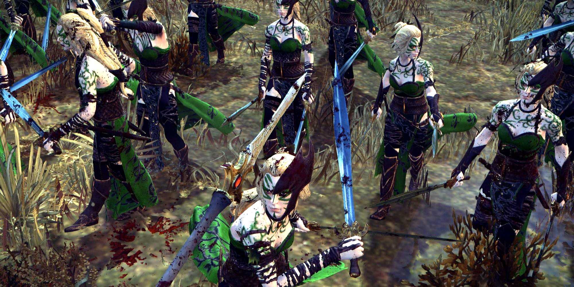 Эльфы в бою с уменьшенным количеством крови на них благодаря моду для Total War Warhammer 2 Выпуск gore pack для Total War Warhammer 2 был встречен неоднозначно — некоторые предполагали, что он был сделан отдельным контентом, чтобы снизить возрастной рейтинг основной игры, а некоторые считали, что разработчикам не стоило делать такой базовый графический эффект функцией DLC. Другие, однако, считают, что с gore pack было перебор. Достаточно совсем немного времени, чтобы ваши юниты окрасились в красный цвет, и это выглядит нереалистично и отвратительно. Этот мод уменьшает это, уменьшая эффекты запёкшейся крови, улучшая реализм и вкус, но не перебарщивая. Ссылка для скачивания: Меньше крови, меньше гари! — II