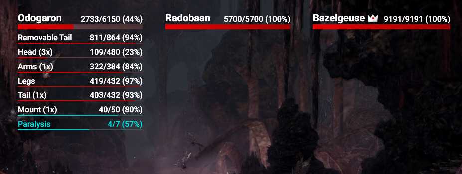Скачать Этот замечательно детализированный мод добавляет на экран виджеты, которые можно изменять по размеру и перетаскивать по своему усмотрению, предлагая всевозможные детали, помогающие в охоте. Самая основная информация – это количество HP у монстра и урон, нанесенный каждым членом охотничьей группы. Но можно пойти и дальше: показать время действия баффов и мантии, а также определить, сколько урона было нанесено голове, крыльям, хвосту и т.д. Более того, он покажет, сколько урона необходимо набрать для получения таких статусных эффектов, как монтировка, паралич, оглушение и т.д. Это очень много информации, которую вы обычно не получаете, поэтому, если она слишком загромождает экран или вам кажется, что вы жульничаете, вы можете настроить мод так, чтобы он показывал только определенные характеристики. Будьте умным охотником и не выходите без него из дома.