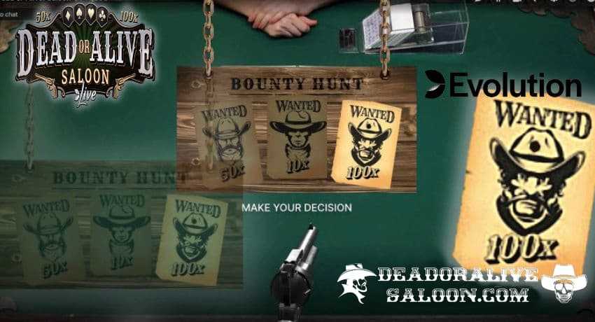Вы можете принять участие в Bounty Hunt Event с будущими бонусными картами, скрытым множителем и функцией удвоения карт в игре Dead or Alive Saloon, созданной компанией Evolution Gaming.