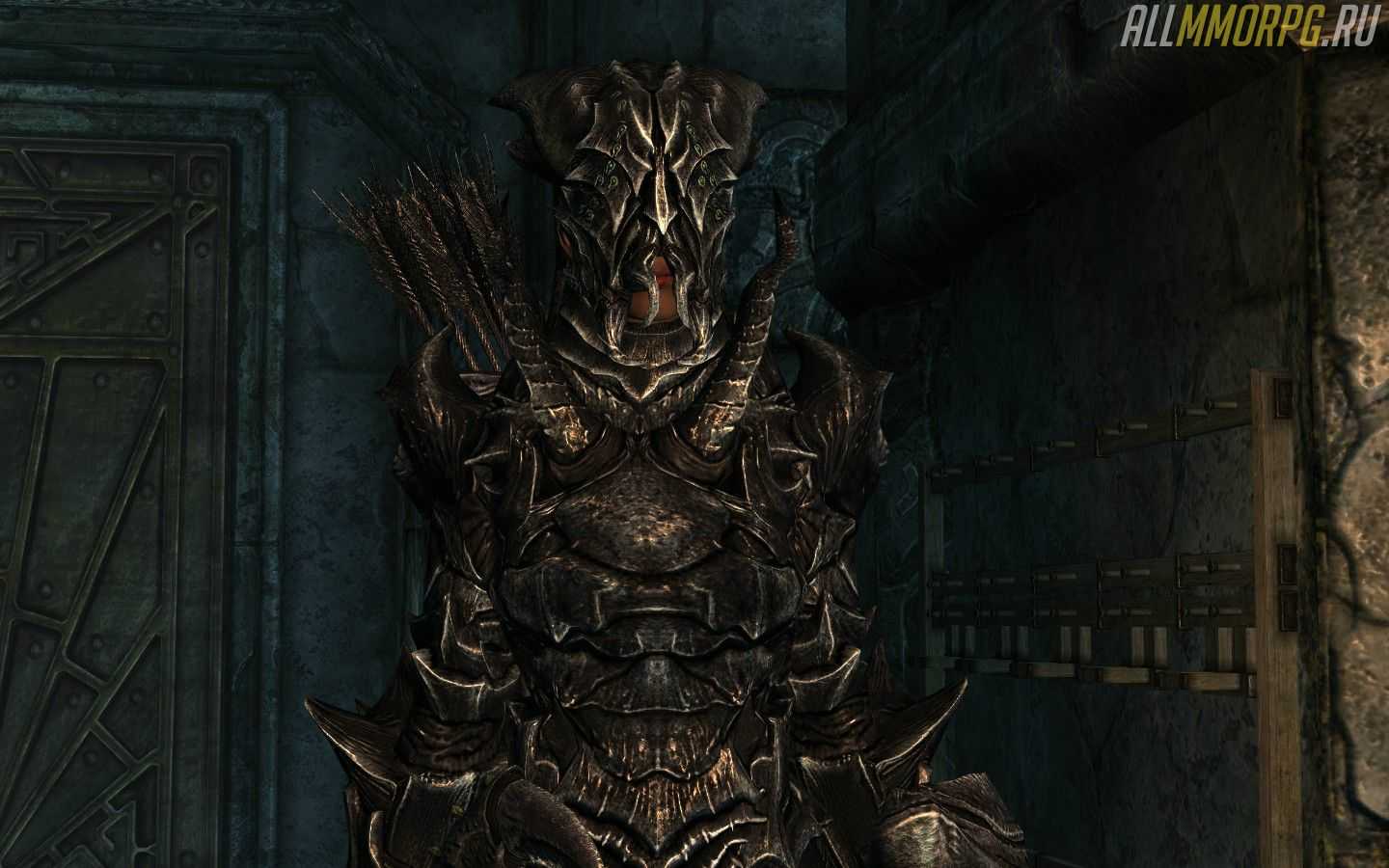 Даэдрические доспехи по праву называются самыми красивыми в Skyrim. Этот комплект тяжелой брони обладает максимально возможным базовым показателем защиты и имеет полезный эффект – если на герое надет полный набор доспехов, то он сможет на 10% успешнее проходить проверки на запугивание.