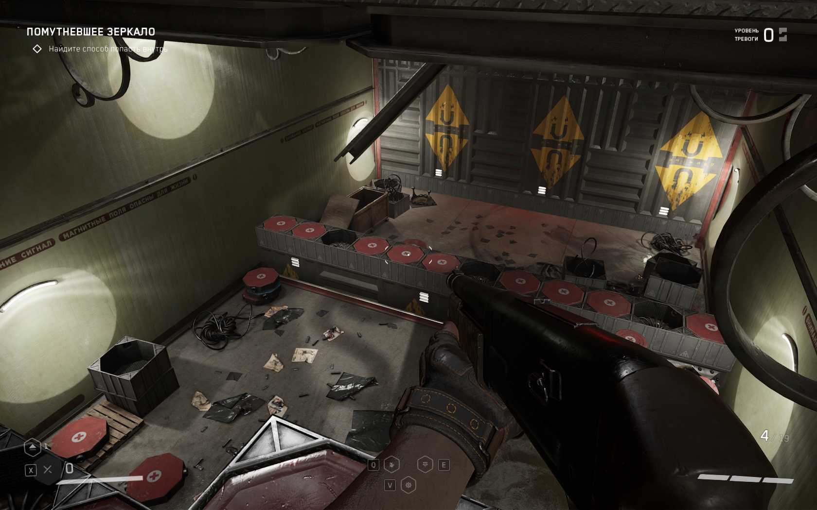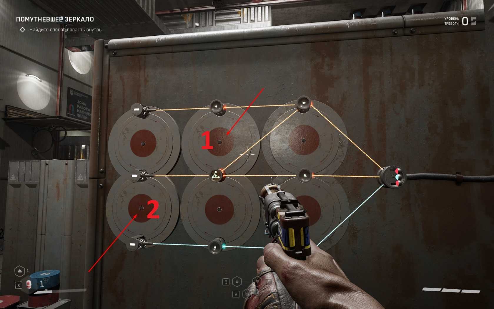 | 15 | Идите по платформам справа на стене, спрыгните на стенд с красными плитками, а потом на пол. Под закрытой дверью вы найдете головоломку с реле пассивной безопасности. Чтобы решить ее и открыть дверь, поверните центральный верхний диск, а после – левый нижний |    |