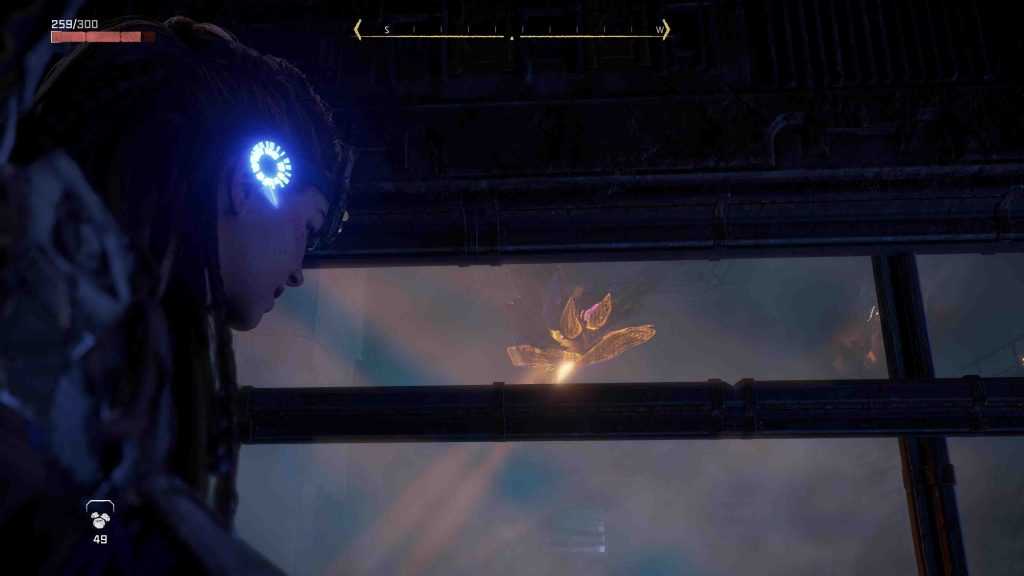 После еще нескольких сцен Элой окажется в воде, преследуемая высокотехнологичными машинами – . Плывите на юго-запад, и когда вы приблизитесь к стене, нырните и плывите через дыру в стене, следуя извилистому пути вперед (влево, вправо, вправо, влево), пока не сможете всплыть на поверхность — у вас должно быть достаточно кислорода, чтобы сделать это.