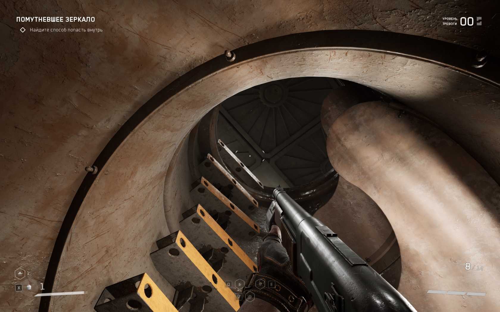 | 14 | Крутите вентили до тех пор, пока перед вами справа не появятся перекладины, за которые можно зацепиться |  |