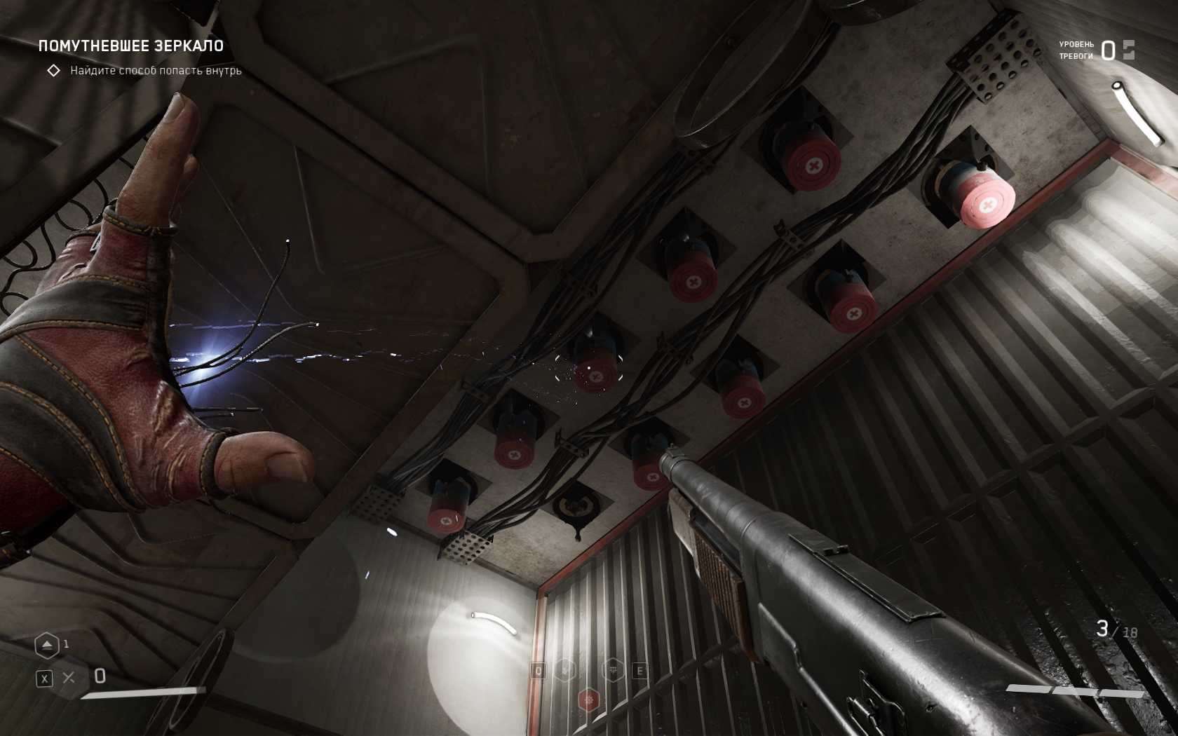 | 16 | Заберитесь по стендам с магнитными плитками обратно на стенд в углу, ударьте «Шоком» по колбам и запрыгните к двери. За ней коридор. Справа – сундук, слева комната с последним Товарищем Лутягиным (в сундуке чертеж «КС-23 – увеличенный магазин») и грузовой лифт, который позволит выбраться с Научного полигона. |    |