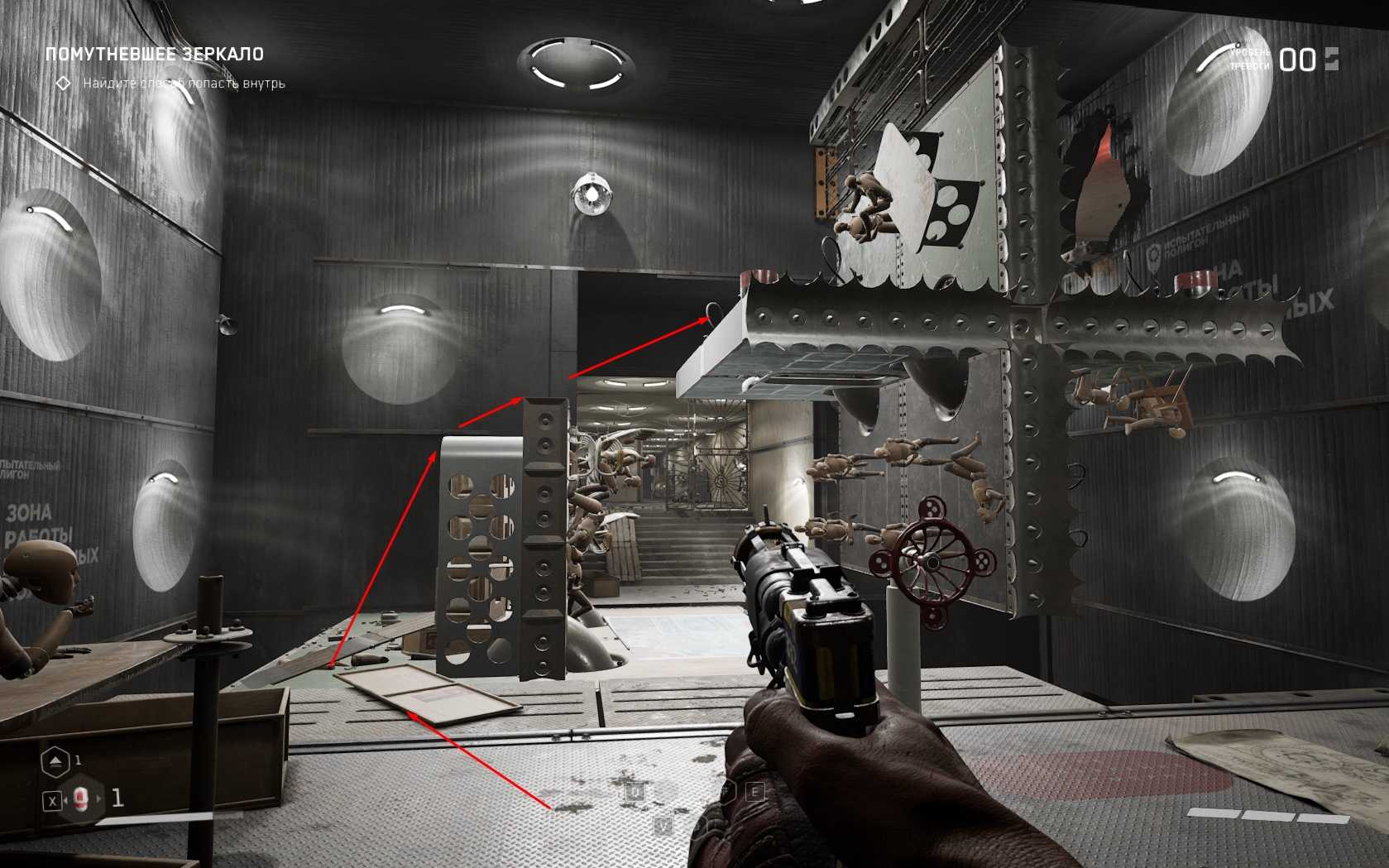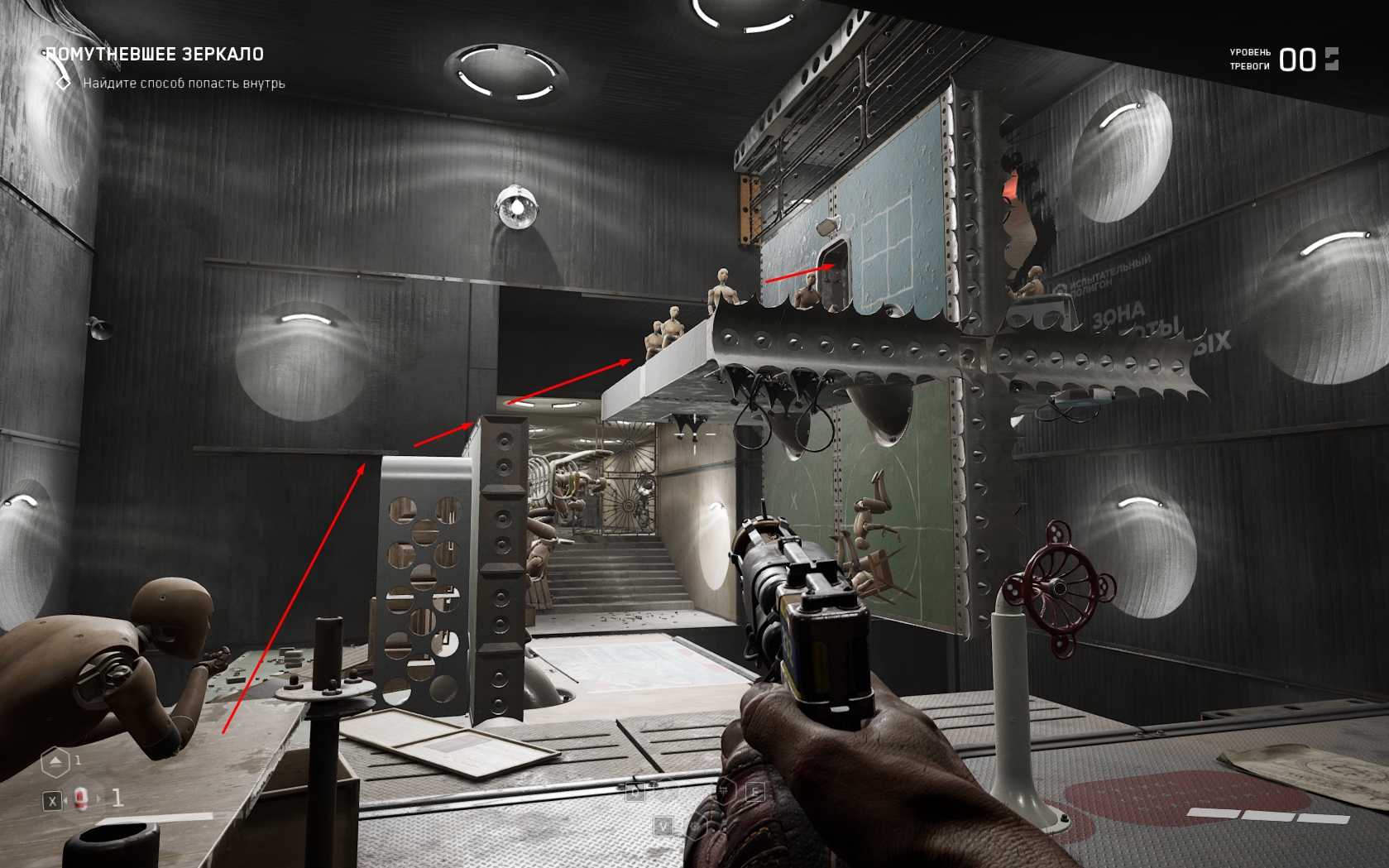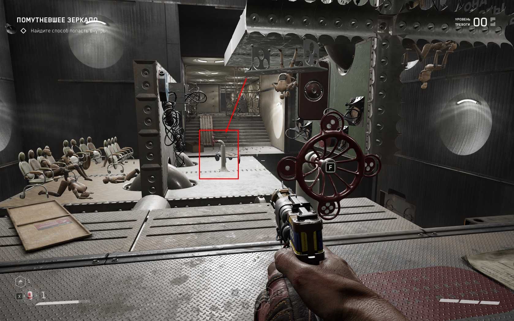 | 2 | Вернитесь к лифту и идите в зал с манекенами. Поверните вентиль на платформе впереди один раз |  |