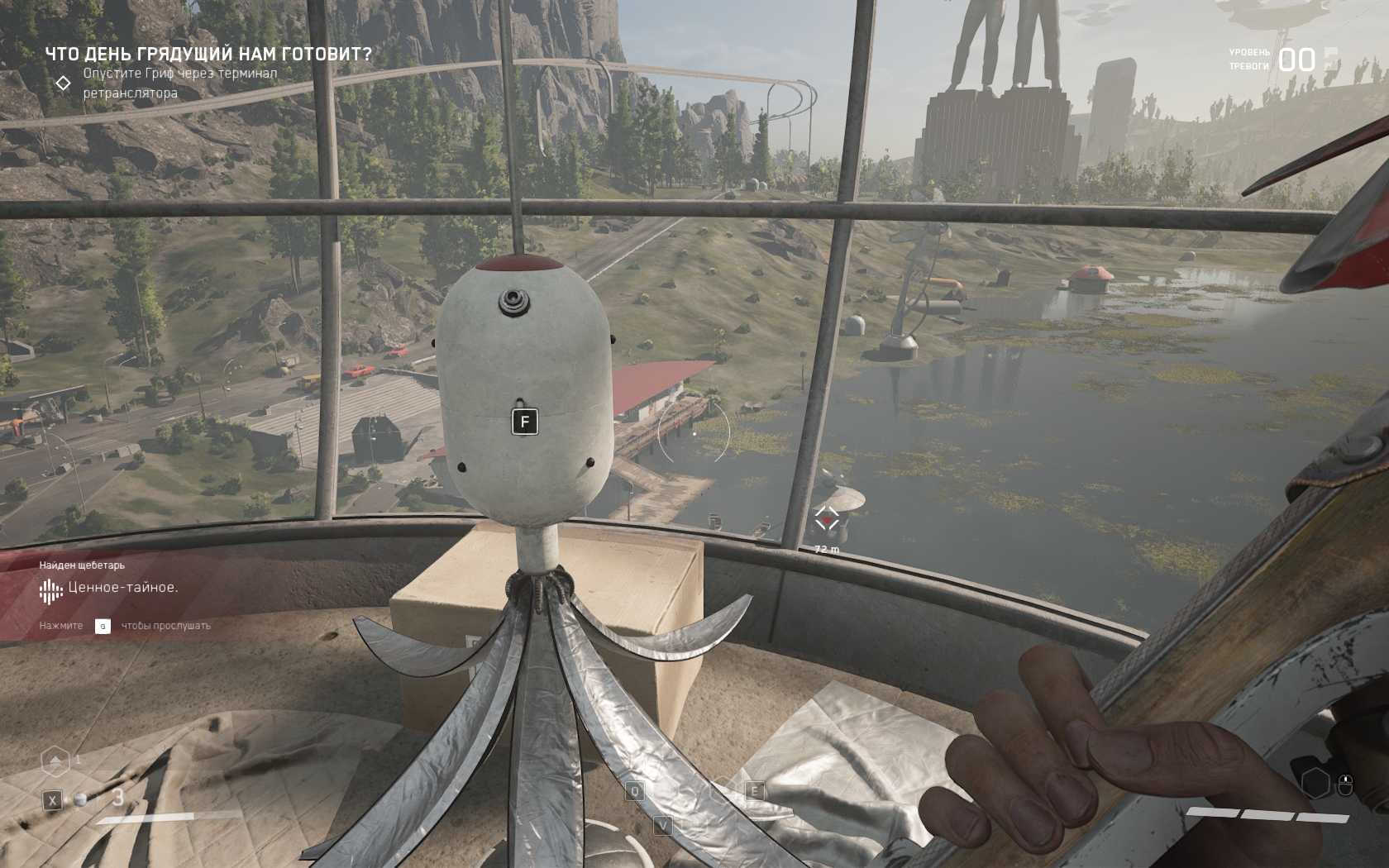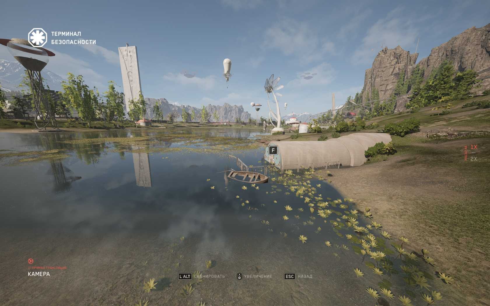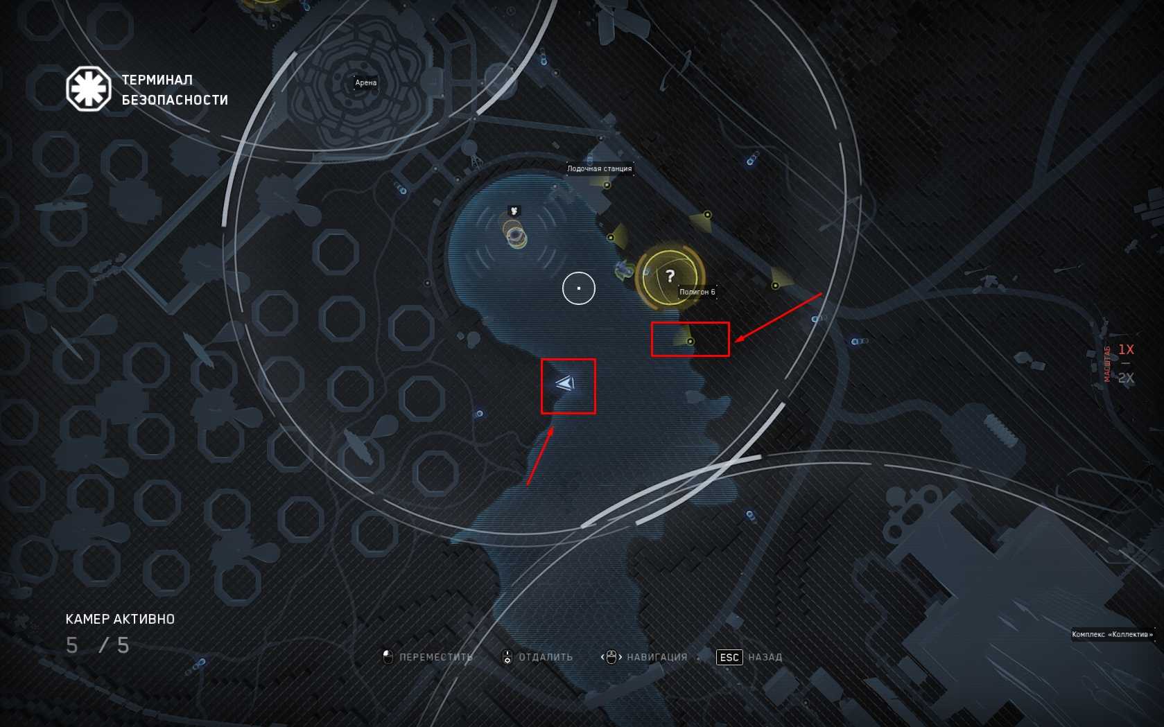 На лодочной станции осмотрите терминал ретранслятора. Он закрыт. Чтобы попасть внутрь, идите к башне «Волан» (на правом берегу водоема) и используйте устройство, дающее доступ к камерам видеонаблюдения. Выберите камеру на лодочной станции, наведите ее на терминал ретранслятора и нажмите клавишу F для открытия двери.