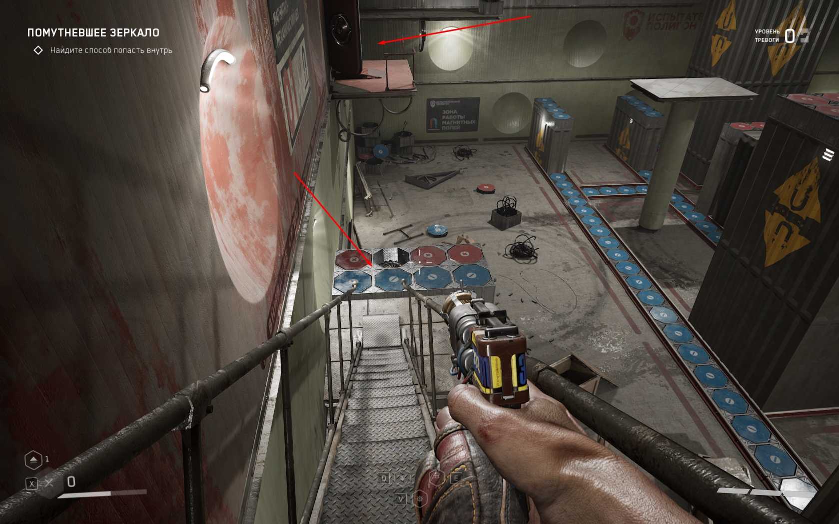 | 4 | Станьте на стенд с красными плитками и снова ударьте «Шоком» по колбам под потолком, после чего пройдите через открывшуюся дверь |   |
