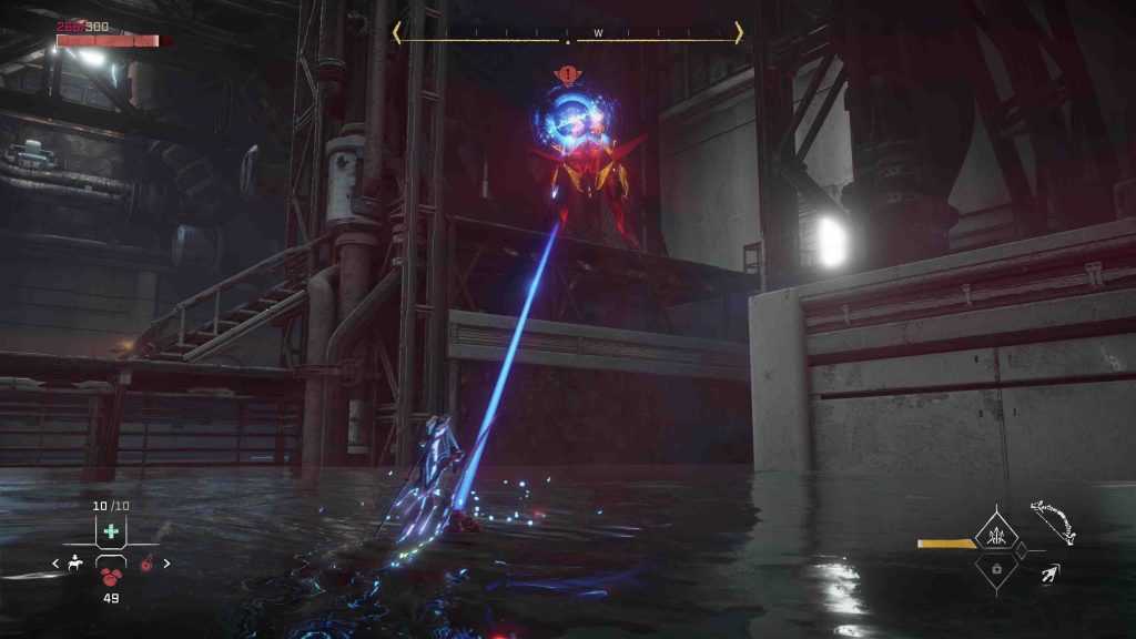 | 2 | Войдите в зону магнитных полей, станьте на красные плитки и выстрелите «Шоком» в магнитные колбы на потолке, чтобы добраться до платформы наверху |   |