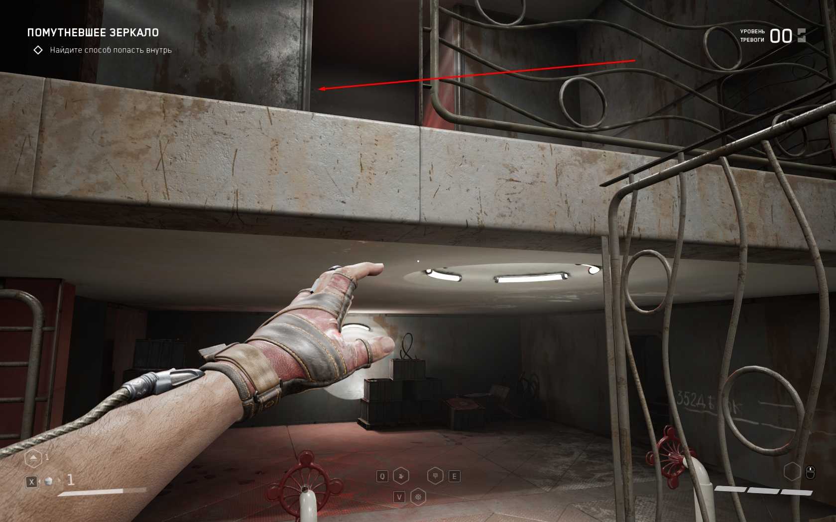 | 12 | Поднимитесь по лестнице и в коридоре сверните налево. Там будет еще одно помещение с манекенами. Вентиль (первый) не трогайте. Сначала залезьте по стенду с ящиками на балкон и спрыгните вниз |   |