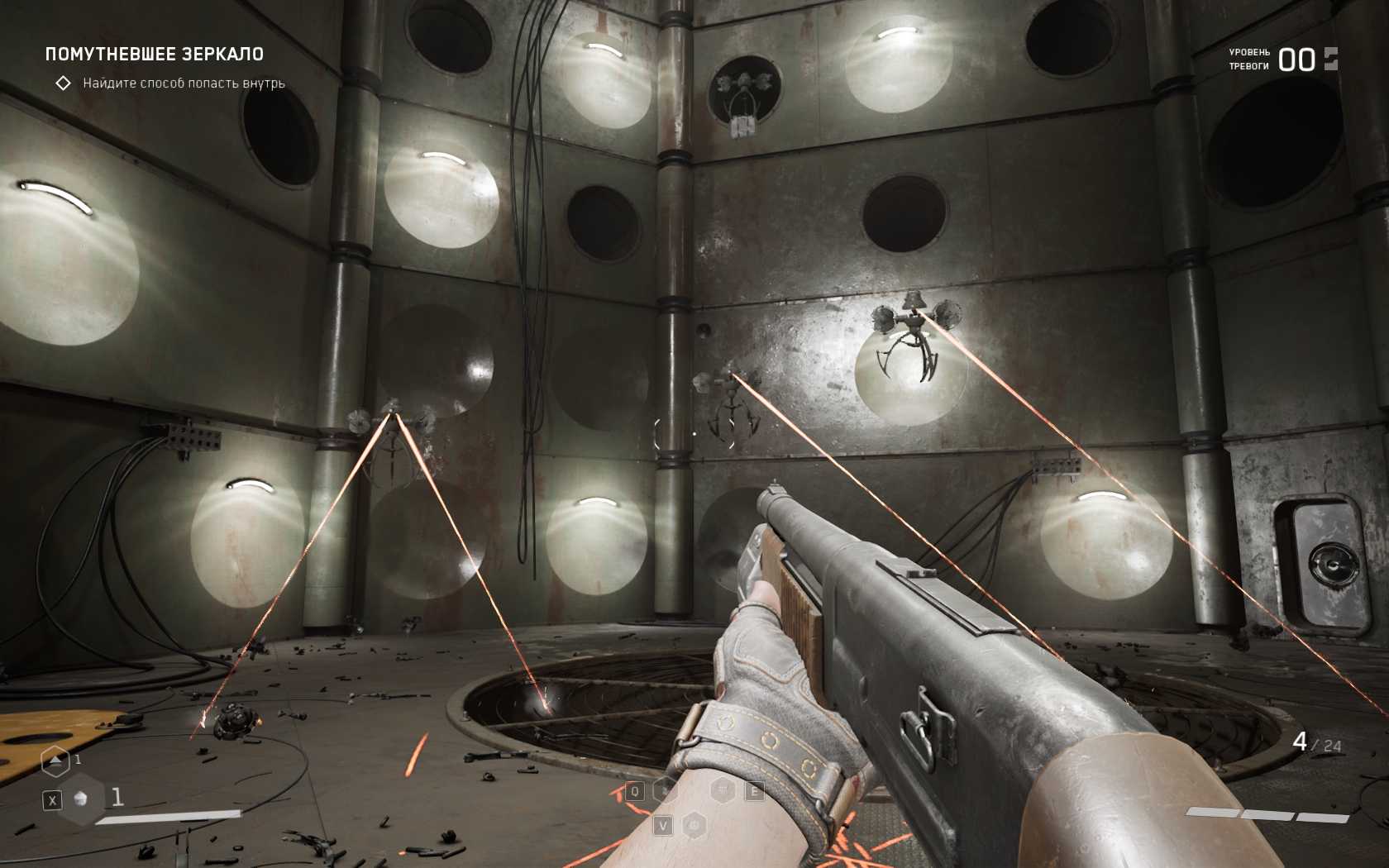 Ваше присутствие гарантировано привлечет внимание роботов, поэтому нужно как можно быстрее добраться до лодочной станции и опустить «Гриф» путем взлома ретранслятора