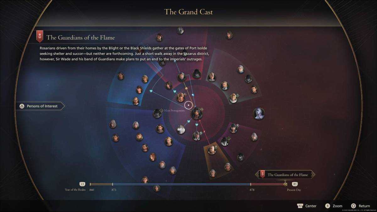 Поначалу следить за историей может быть трудно из-за обилия персонажей, имен и понятий. На помощь приходит система Active Time Lore — «Текущие знания о мире» в русской версии. Кат-сцену в любой момент можно поставить на паузу, и игра подскажет, кто сейчас на экране. А еще даст почитать краткую справку о героях и локации в ролике. Пренебрегать этой возможностью не стоит: персонажи не торопятся проговаривать неочевидные для игрока вещи. Например о том, кто такие Доминанты и откуда у Джошуа сила Эйкона.